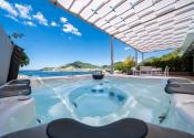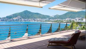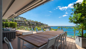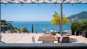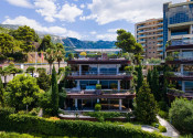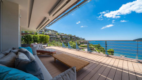 Ponúkame na predaj krásny, priestranný, strešný byt s otvorenou terasou na najvyššom poschodí nad plážou a s panoramatickým výhľadom na more a celú Budvu v luxusnom komplexe v prvej línii pri mori.