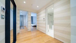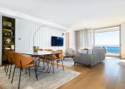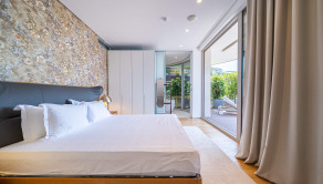 Na druhom podlaží sa nachádza pôsobivý byt s tromi spálňami, dvomi kúpeľňami, hosťovským WC, priestrannou obývacou izbou, jedálňou a modernou kuchyňou. Byty majú aj ďalšiu priestrannú terasu s posedením a panoramatickým výhľadom na more.