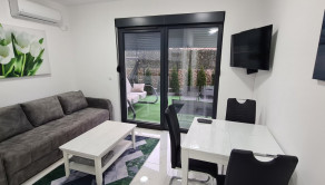 Ponúkame na predaj peknú a pohodlnú garsónku v Djenovici. Celková plocha je 20 m2 s priestrannou zelenou terasou o rozlohe 19 m2, kde máte úplné súkromie. Byt sa nachádza na prízemí v 5-poschodovej budove postavenej z kvalitných materiálov a v prednej časti budovy máte k dispozícii jedno parkovacie miesto vo dvore.