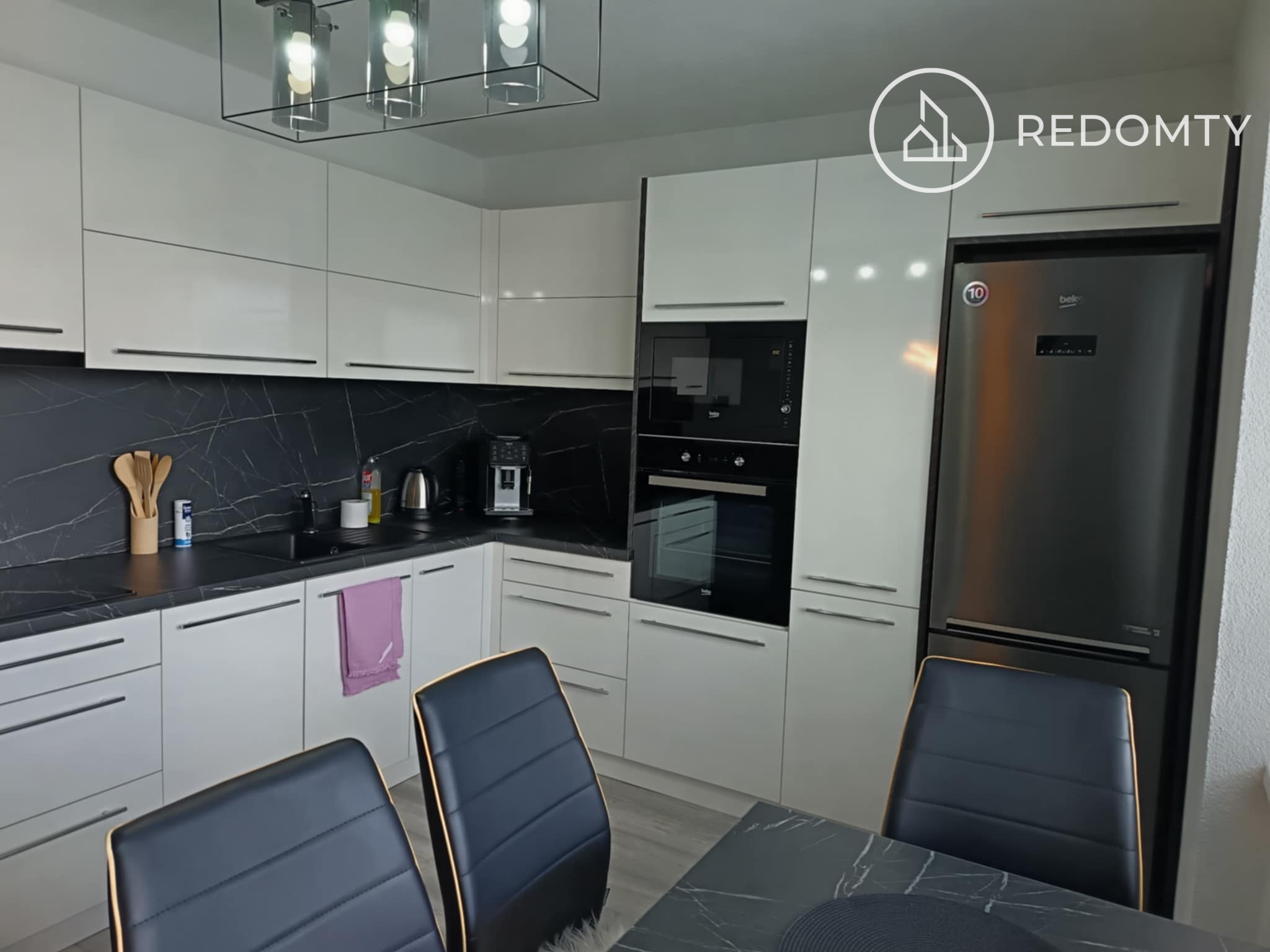 Byt je kompletne zariadený, má kuchyňu so sklokeramickou doskou, elektrickou rúrou, mikrovlnkou a umývačkou riadu, kúpeľňu s vaňou, samostatné WC a komoru. Zariadenú obývaciu izbu aj spáleň. Stačí si doniesť osobné veci a môžete bývať.
